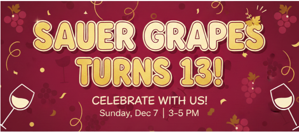 Sauer Grapes is turning 13! And my greatest joy will be sharing this milestone with all of you who made it possible.
